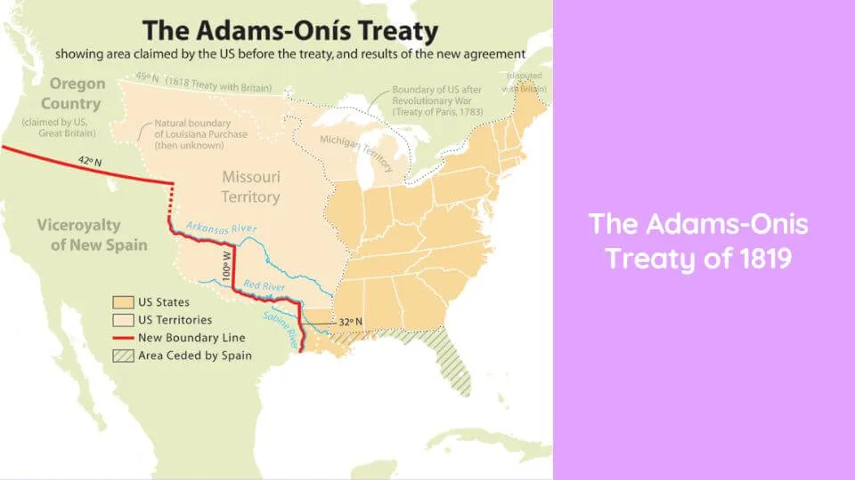 | Overview | The Adams–Onís Treaty of 1819 was a historic agreement that ceded Florida to the U.S. and defined the boundary between the U.S. and New Spain (now Mexico), marking a triumph in American diplomacy. |