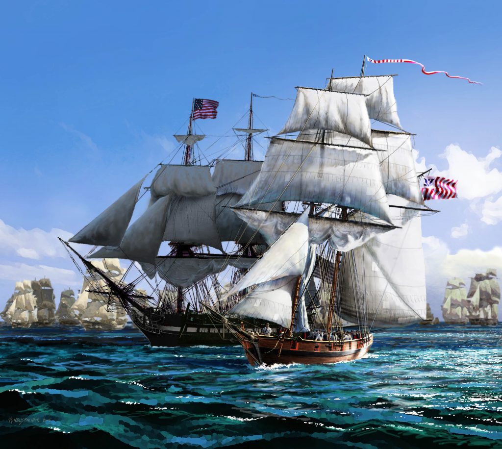 By October 1797, over 300 American merchant ships had been captured by the French. In response, the U.S. Congress, under President John Adams, approved the creation of the U.S. Navy Department in 1798 and authorized naval defense against French attacks.The newly formed U.S. Navy, consisting of converted merchant ships and the first few frigates like USS Constitution, engaged French privateers and warships in the Caribbean. Notable actions included the capture of the French privateers L’Insurgente and La Vengeance by USS Constellation.
